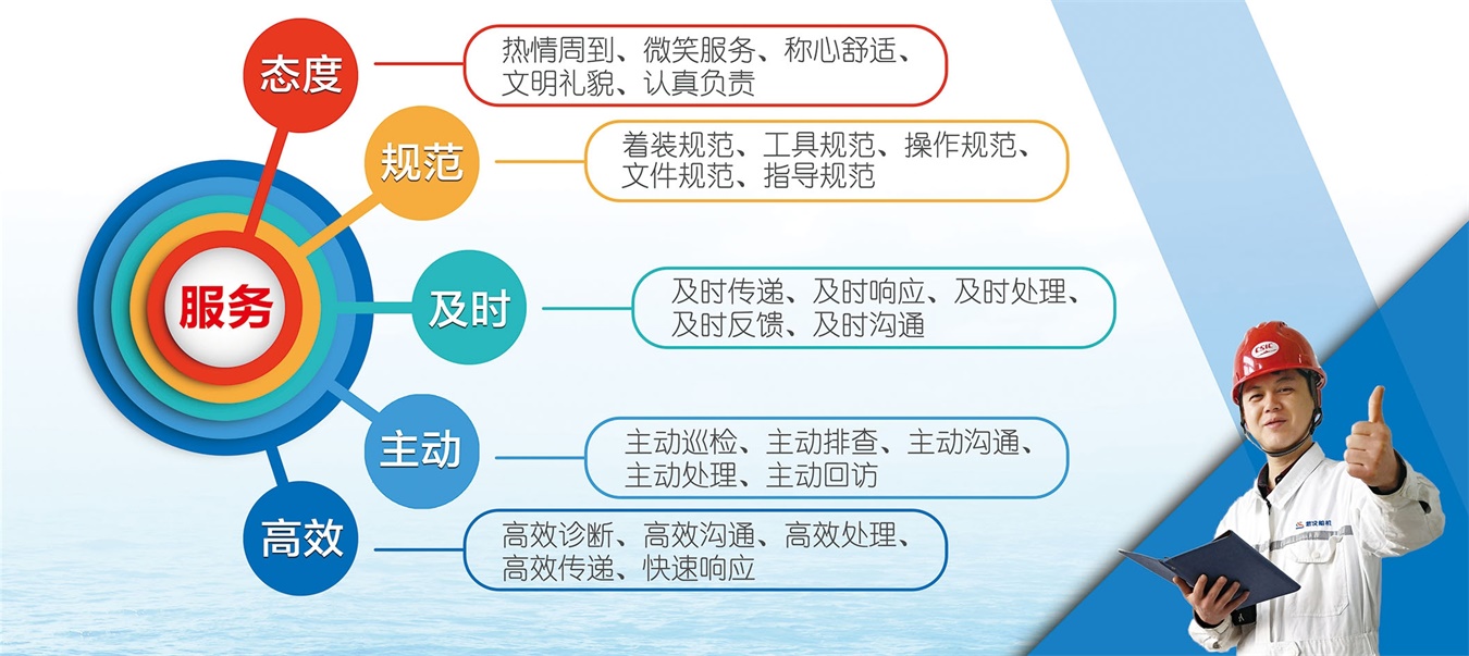 售后服務網點輻射沿海各大港口及相鄰船廠。售后服務工程師長期駐守售后服務網點及周邊地區,只要客戶需求,我們會及時作出響應,第一時間為客戶解決問題。