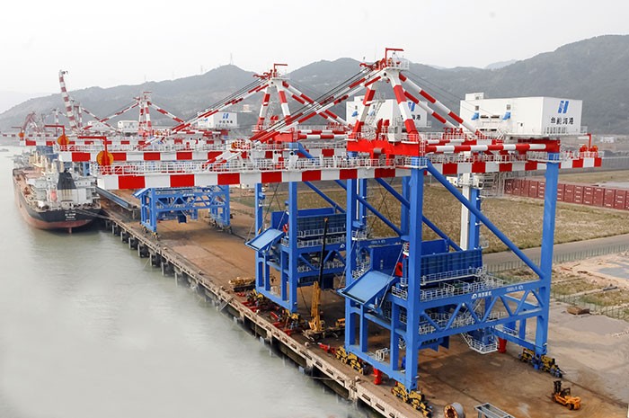 煙臺港萬華工業園碼頭1500t'h橋式抓斗卸船機