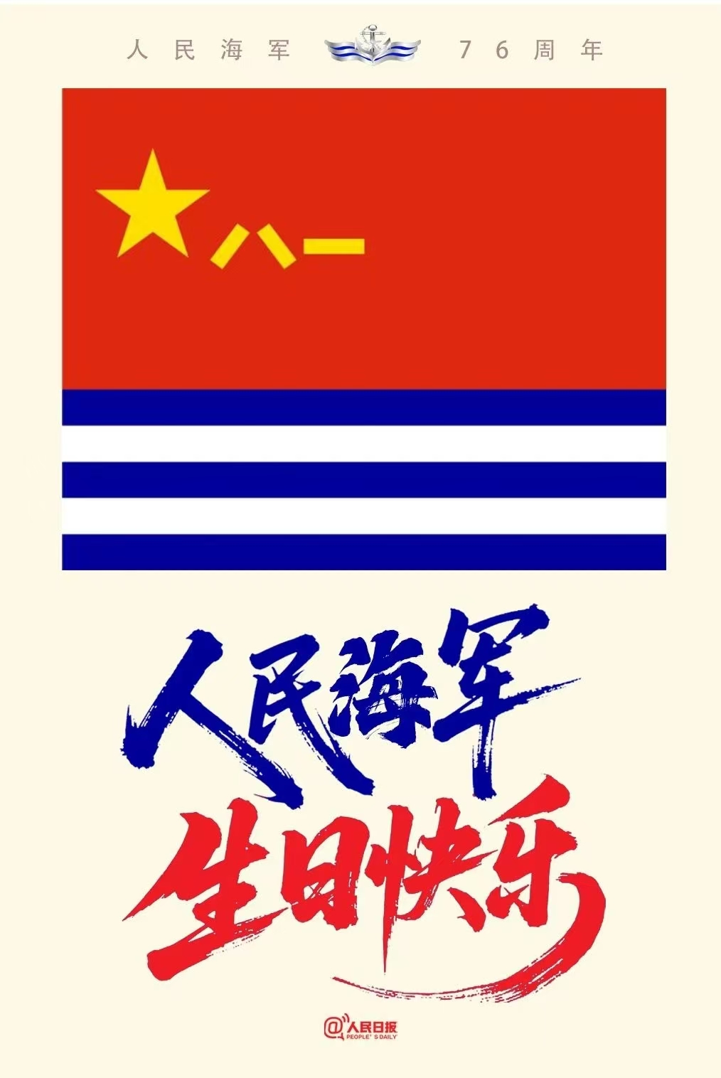 今天(4月23日),是人民海軍成立76周年紀念日。76年來,人民海軍從小到大、由弱到強。從小艇到巨艦,從近岸到深藍,從單兵到體系,守衛祖國海空,守護萬家燈火。