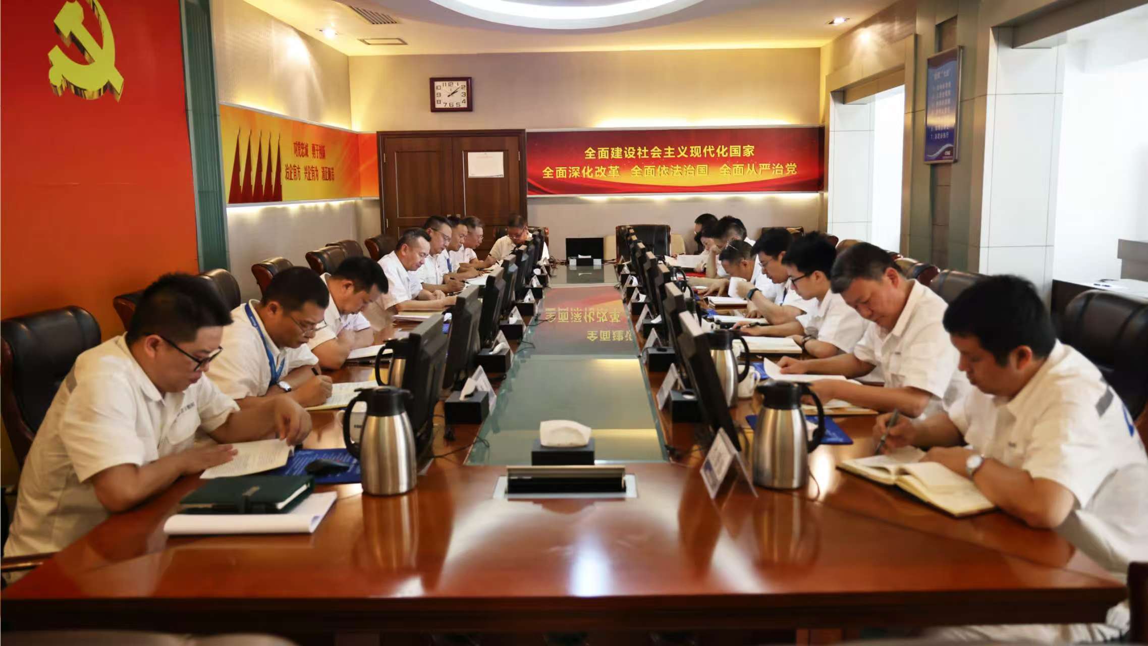 7月12日,中船集團(tuán)武漢船機(jī)黨委召開深入貫徹中央八項(xiàng)規(guī)定精神學(xué)習(xí)教育讀書班(第四期)暨黨委理論學(xué)習(xí)中心組學(xué)習(xí)會(huì)議。公司黨委理論學(xué)習(xí)中心組成員參加學(xué)習(xí)會(huì)議,公司黨委副書記、總經(jīng)理程立兵主持學(xué)習(xí)會(huì)議。