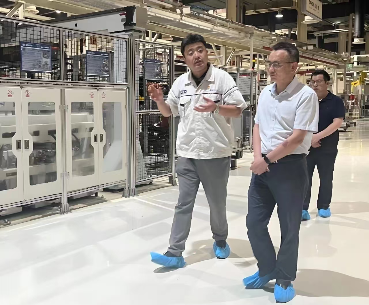 程立兵一行參觀了解放動力惠山基地,現場學習了智能制造、精益管理和安全生產等方面做法。解放動力惠山基地以“超級綠色”“超級智能”“超級精益”三大特性展示了其高標準和先進性,致力于打造“世界領先的重型發動機智能制造基地”,將精益化和綠色化貫穿生產全過程,實現工廠運行管理智能化。智能制造車間里忙碌的機器人、自動AGV物流小車、智能立體庫、綠色熱試線等引人注目,程立兵一行表示解放動力在智能化改造、數字化轉型、探索綠色低碳可持續發展等方面對公司具有較強的借鑒和啟示意義。