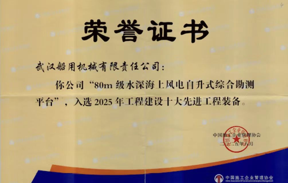 近日,2025年工程建設十大先進工程裝備名單正式公布, “80m級水深海上風電自升式綜合勘測平臺”成功入選。該平臺是中船集團武漢船機總包建造的“華東院308”平臺,中國電建集團華東勘測設計研究院有限公司等多家單位共同研制。作為當前我國技術指標先進的海洋新能源綜合勘測平臺,在深遠海風電勘測實際工程應用中發揮了突出作用。